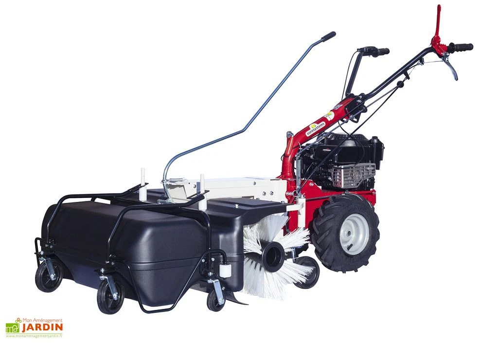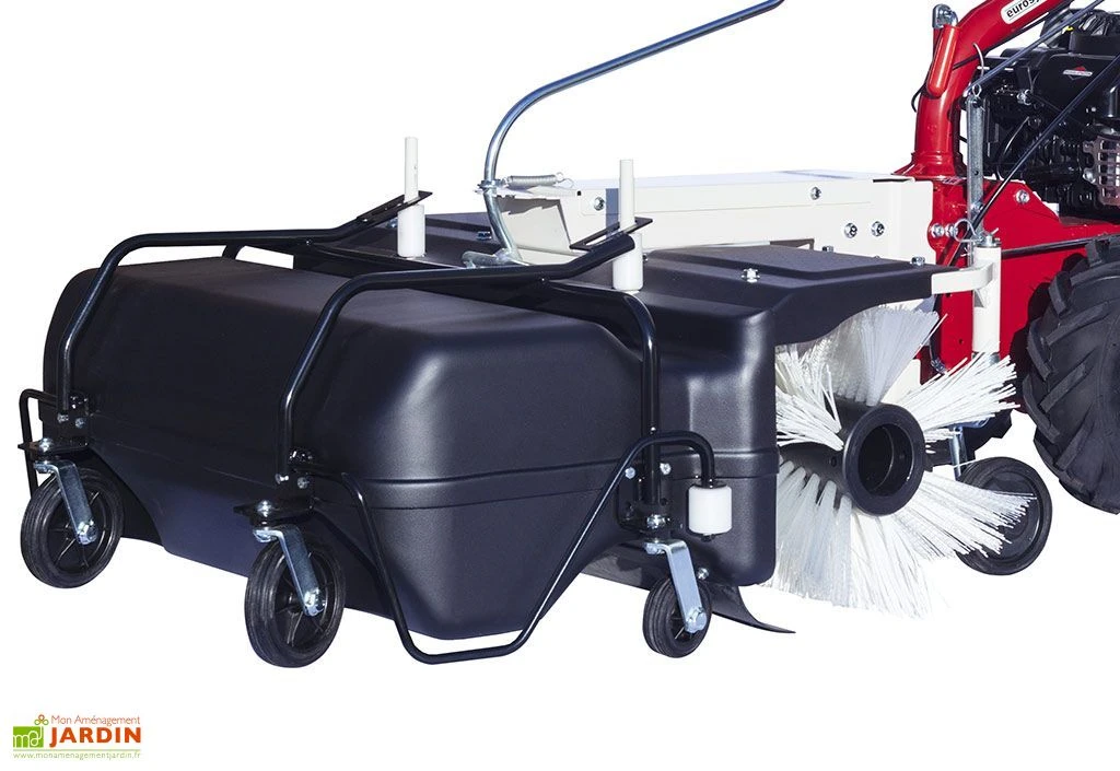 La balayeuse de chez Eurosystems doit s’installer et s’utiliser avec le Porte Outils Thermique Multifonctions 190 CC – P55. Le balai frontal mesure 88 cm de largeur et 31 cm de diamètre. Il est rĂ©glable en hauteur et s’oriente dans 5 positions. Le bac de ramassage est en ABS et mesure 83 x 40 x 29 cm (l,l,h). Il dispose de roues de support.Â