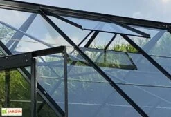 Cette lucarne en alu gris anthracite s’installe sur les serres de jardin Natura de la marque Lams. Elle existe en diffĂ©rent coloris pour s’adapter Ă votre serre.