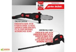 Cet outil de jardinage 3 en 1 de la marque Elem Garden vous permettra d’entretenir parfaitement votre jardin. Très simple d’utilisation, il se compose d’un taille-haies, d’une élagueuse ainsi que d’un coupe bordures. Son manche télescopique de 160 cm maximum vous offre la possibilité d’atteindre aisément des endroits difficiles d’accès sans utiliser un escabeau ou une échelle. Deux batteries de 2000 mAh de 20 V sont incluses.