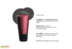 Très pratique, la version double paroi permet d’offrir une meilleure isolation à vos plantes tout en améliorant la résistance du pot. Elle permet également de profiter d’une réserve d’eau de 13 L. Le pot intérieur possède par ailleurs un double fond et dispose d’un système de mèche permettant d’acheminer l’eau vers la plante. Un bouchon vous permettra enfin d’installer le pot en intérieur sans avoir à craindre la moindre fuite.Â