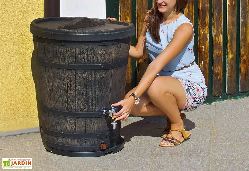 Roto Cuve De Récupération D’Eau De Pluie 130 L Tonneau Imitation Bois