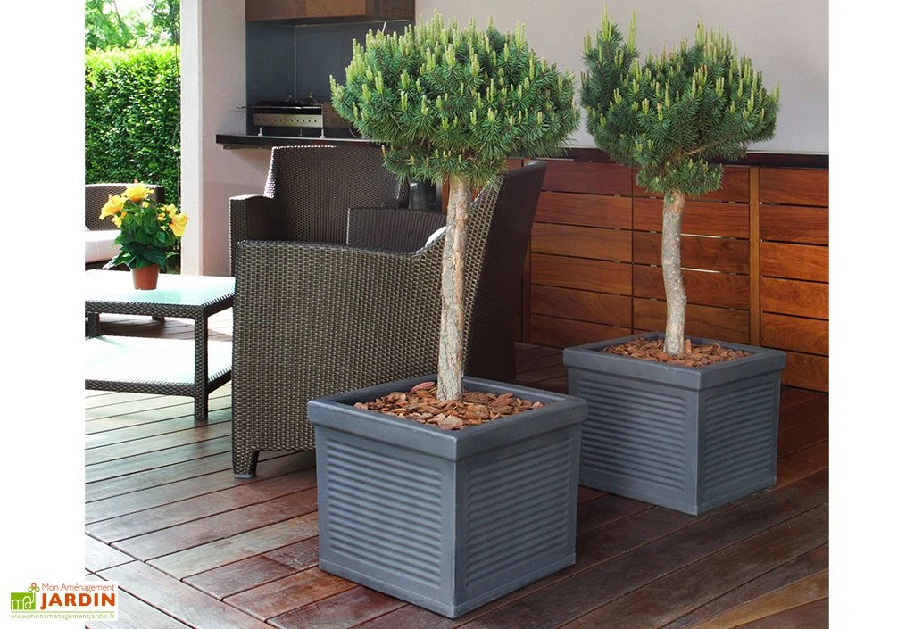 Roto Pot De Fleurs Extérieur En Polyéthylène Et Bois 43 X 40 Cm Line L