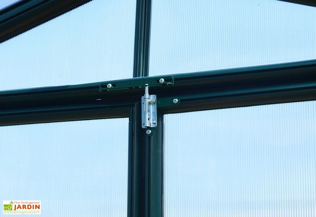 La serre de jardin dispose d’une grande double porte de 119 cm de largeur pour 165 cm de hauteur. Elle est montée sur charnières et permet d’entrer facilement avec des objets volumineux. Elle permet également de faciliter l’aération à l’intérieur de la serre. Livrée en kit, le montage est facile grâce à un système de profils uniformes et de connecteurs à emboiter. La garantie est de 7 ans.