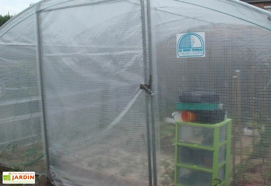 Votre serre de jardin 4 Saisons Plus de chez Tonneau mesure 4 x 4,50 m (l,p) pour une hauteur de 2,17 m. Ses pieds droits mesurent 1,50 m de haut. Votre serre est équipée de deux portes pivotantes de 1,35 m de large, que vous pourrez habiller d’une housse de porte en filet, permettant ainsi l’aération de votre serre (les filets pour les 2 portes sont fournis).