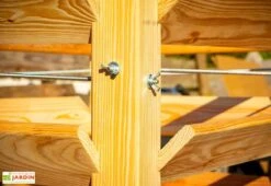 Solide et très résistante en cas d’intempéries, cette tour de culture verticale est conçue en mélèze. Quasi imputrescible, ce type de bois ne craint ni l’humidité, ni la moisissure et les insectes qui pourraient, à terme, le détériorer. Pour une protection complète et afin de préserver l’aspect du bois, il est toutefois recommandé d’appliquer une lasure ou un saturateur. Notez enfin que le bois utilisé pour concevoir ce potager surélevé est certifié FSC, ce qui signifie qu’il provient de forêts gérées de manière écoresponsable.